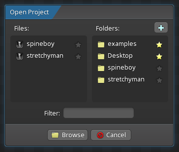 Many workflows involve working in a handful of directories. We've introduced new file dialogs that show you recently opened project files and often used directories. You can explicitly favorite a file or folder for it to show up at the top of the list. Right clicking an entry will remove it from the list. The filter box allows you to quickly filter for files by parts of their name. We've also added a few hot keys to make your file browsing even more efficient. Pressing enter will chose the most recent file or folder, pressing spacebar will immediately open the OS file dialog if you can't find the file or folder you want in your recently used lists.