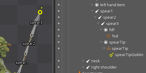 This new type of attachment is a point in space and a rotation, which is transformed by parent bones like you'd expect. It can be used to spawn particles or do anything else that involves a position and/or rotation. Point attachments have one advantage over bones: a point attachment can go in a skin, so the position and rotation can change for different skins. For example, different guns may shoot from different positions.