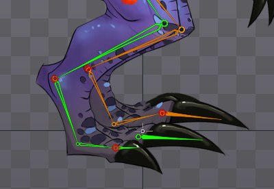 The editor area shows bones that are affected by a constraint as hollow. When a constraint is affecting the bone some transform tools may have a reduced effect or none at all, depending on the constraint mix. To adjust a constrained bone, the constraint's mix can be temporarily set to 0.