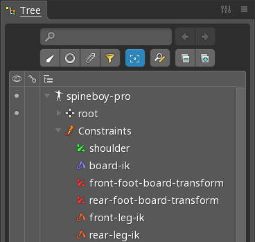 The right edge of the tree displays annotation icons for bones that are constrained by or the target of a constraint. The icons can be clicked to select the constraint.