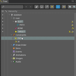 In exported skeleton data, folder names are prepended to the constraint name to create the final name used in the Spine Runtimes. For example, if the folder weapons has a subfolder arms which has a constraint left-arm, then the constraint name at runtime is weapons/arms/left-arm.