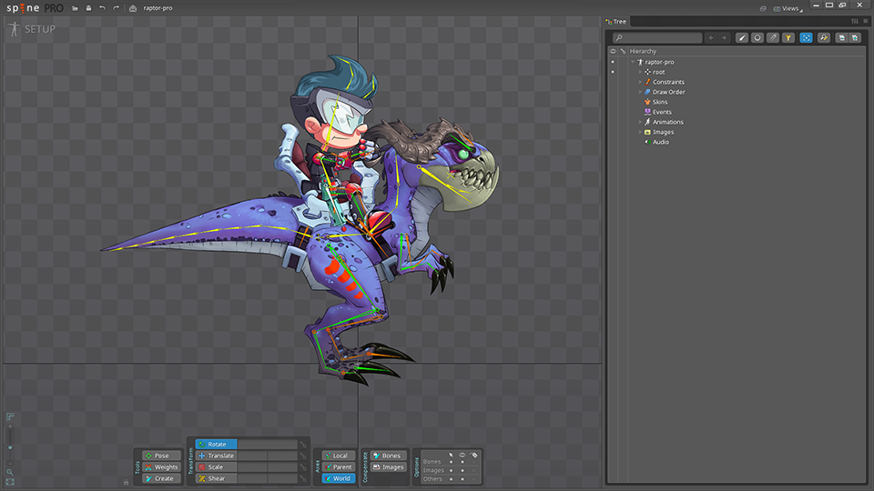 The Spine editor offers powerful tools and features to make editing your 2D animations as simple and efficient as possible. We have prepared lots of learning materials to get you up and running in no time.