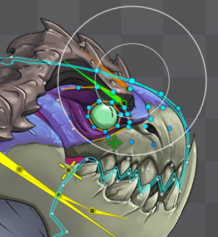 The mesh tools view provides "soft selection" for vertices. When the selected vertices are transformed, other vertices within the soft selection size are also transformed. This can help when manpulating many vertices or to move vertices with a gradual fall-off. It works with mesh, path, bounding box, and clipping attachment vertices.