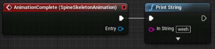 The skeleton animation component provides delegates to which C++ code or blueprints can bind in order to react to these events for all queued animations on all tracks. Listeners can also be bound to the corresponding delegates of a specific TrackEntry only.