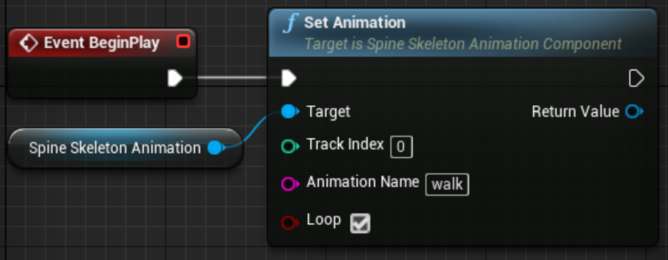 UTrackEntry* entry = animationComponent->SetAnimation(trackIndex, FString(TEXT("walk")), true);