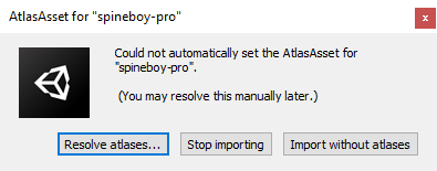 Why does import fail with a window saying "Could not automatically set the AtlasAsset for .."?