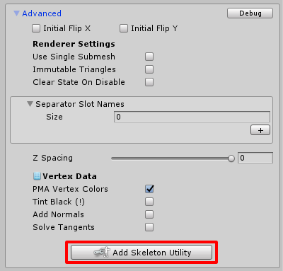 SkeletonGraphicInspector in theAdvancedsection, it does not require any additional components.