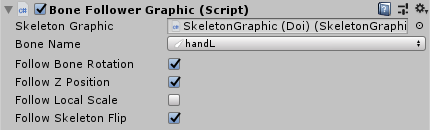This component is a variant of the Bone Follower component to be used with SkeletonGraphic components.