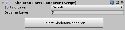 Sorting LayerandOrder in LayerEach of theSkeletonPartsRenderersprovides aSorting LayerandOrder in Layerproperty in the inspector. You can now setup the sorting properties at eachSkeletonPartsRenderer. Higher values will move the renderer to the front.