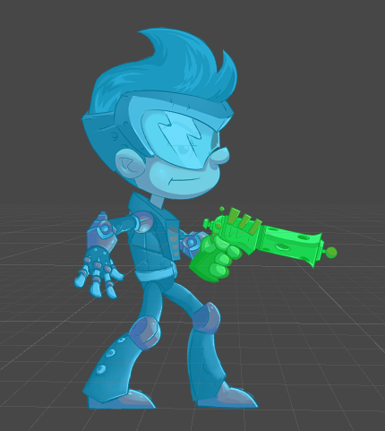 You may want to display other GameObjects between parts of your character, e.g. to let your character run into a tree and display one leg in front and one behind the trunk. The SkeletonRenderSeparator component allows you to split your SkeletonRenderer into two or more SkeletonPartsRenderers with customizable layer order.